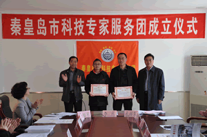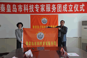 市科协主席李三练向市科技专家服务团授旗并讲话;市科技专家服务团团长、市科协副主席王丽萍主持仪式并为市科技专家服务团各分团授旗;市科技专家服务团副团长、燕山大学副校长孔祥东,市科技专家服务团副团长、市第一医院院长冯继,市科技专家服务团副团长、秦皇岛出入境检验检疫局检验中心主任曹彦忠出席仪式并为入选专家代表颁发骋书。市科协学会部部长侯芳宣读《秦皇岛市科技专家服务团管理办法》。