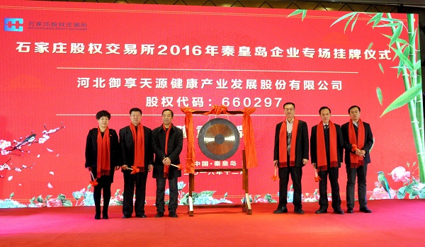 作者:admin | 更新时间:2017-01-05 | 点击量:188次12月30日,石家庄股权交易所在秦皇岛市秦皇国际大酒店举行2016年企业专场挂牌仪式,河北御享天源健康产业发展股份有限公司成功在石交所主板挂牌,标志着企业正式登陆资本市场。此次挂牌的企业全市共12家。