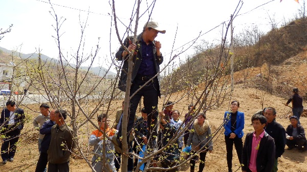 为使大家有一个更加直观的印象,两位专家又来到田间地头现场举办苹果树、皇冠梨、栗树整形修剪技术培训班。齐博士亲自爬上果树,讲解剪枝、疏花、疏果的动作要领,特别强调了发育期树苗与老果树、稀植与密植之间管理的共同点和不同点,养果与养树与养地之间的关系,指出树叶、树枝及杂草粉碎还田为肥的重要意义。