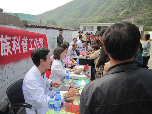 9月13日上午,青龙满族自治县科协与县食品药品监督管理局首先开展了“送医 送药 送科技”惠农服务活动,标志着青龙满族自治县“全国科普日”系列活动拉开了帷幕。来自青龙满族自治县第一人民医院、青龙中医院、妇幼医院、生殖保健医院、县医药公司等一行30多名医生、专家及组织者来到了县城西南较为偏远的草碾乡闫杖子村,并携带B超声波仪、心脑电图仪、血压计等,为当地百姓义诊送药,发放科普宣传资料,为群众讲解医疗保健方面的科普知识。
